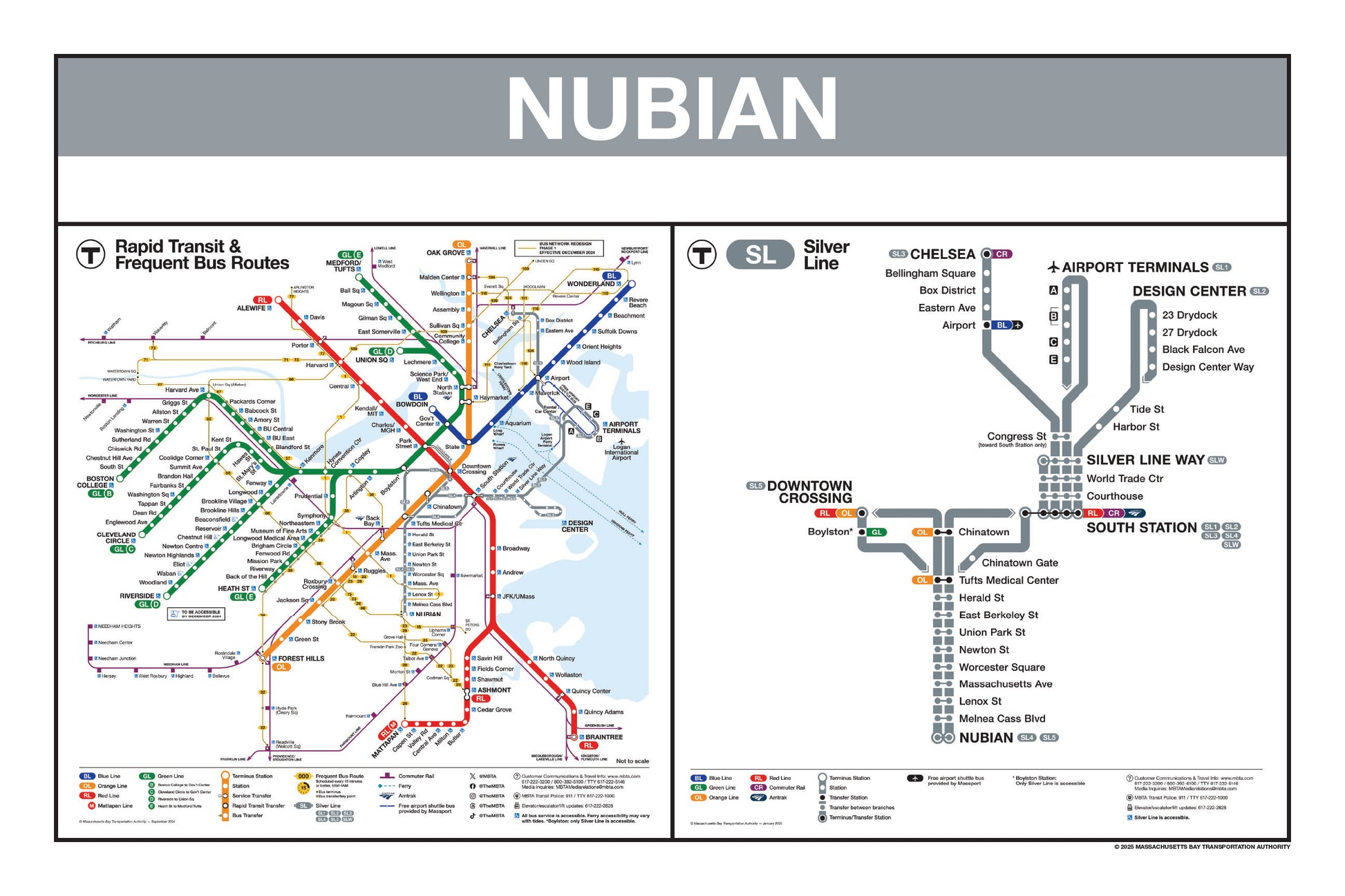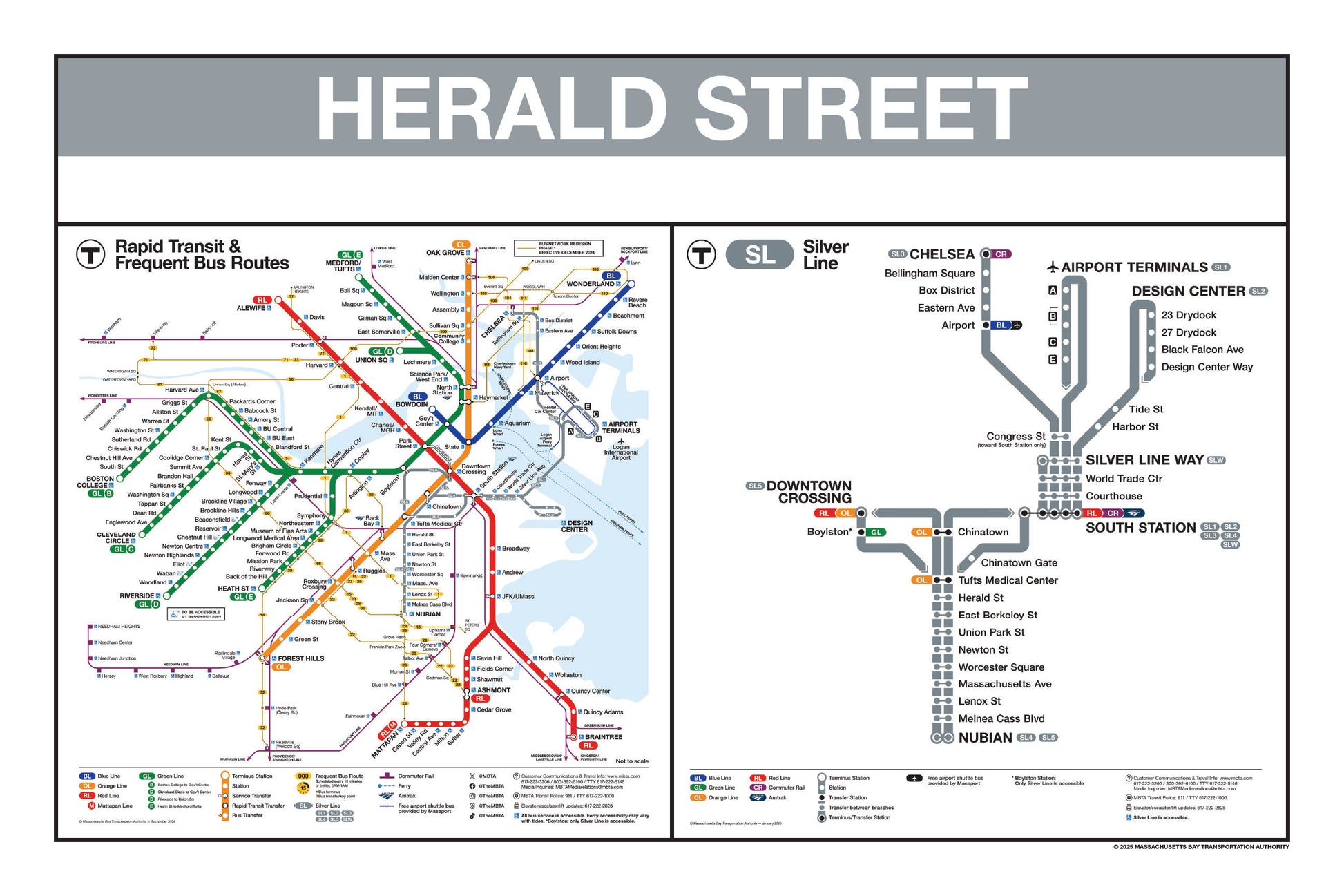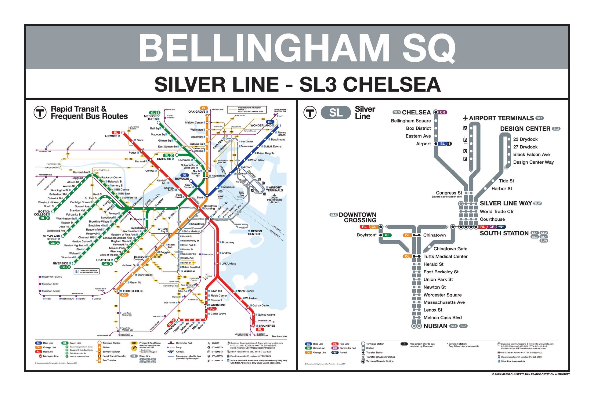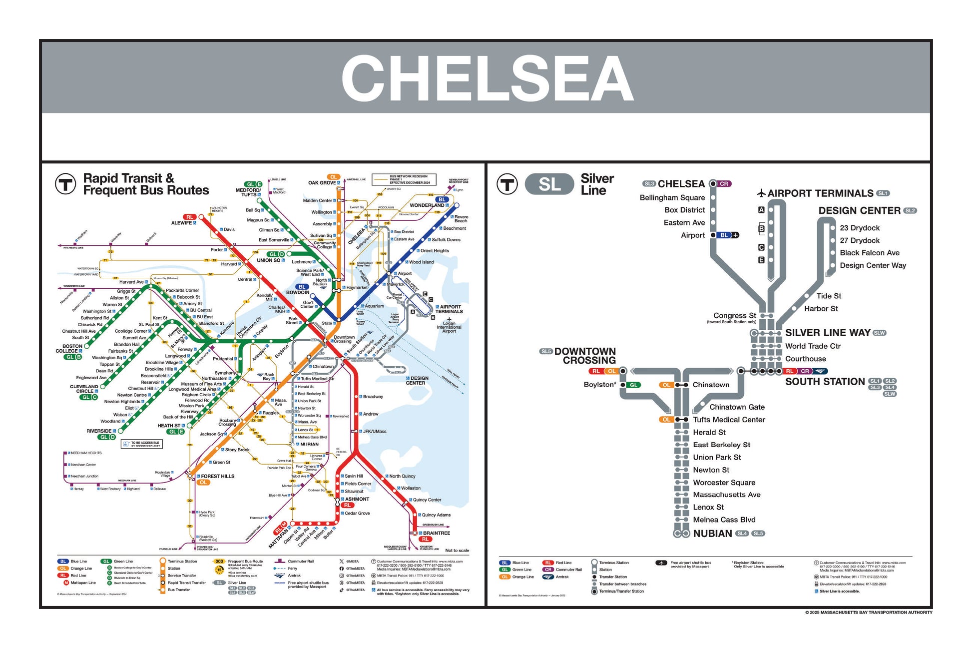 Choose a Silver Line station name from the button list below and a print will be made for that station. Each print will include the 2024/25 MBTA Rapid Transit Map & Frequent Bus Service Map as well as the 2024/25MBTA Silver Line Map.