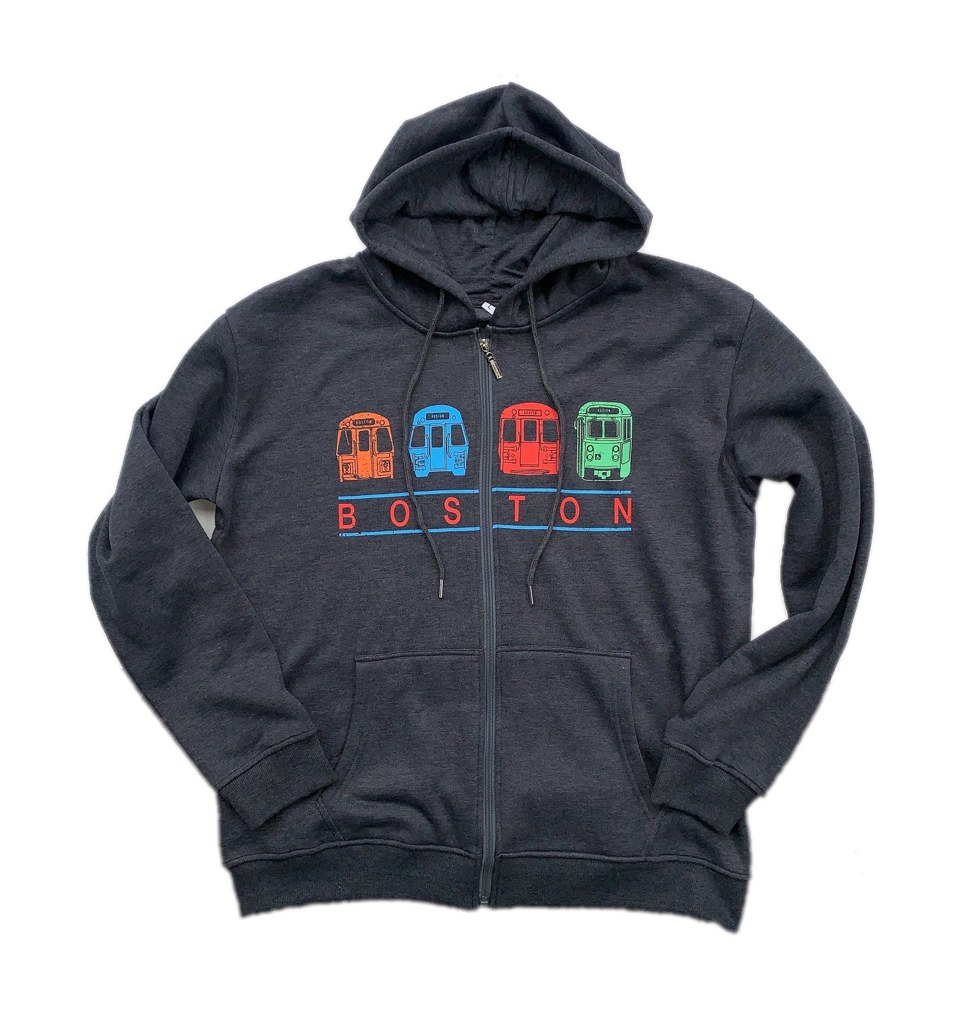 Boston MBTA Train Banner Zip Hoodie - Heather Charcoal (ADULT) (LTD QUANTITIES)