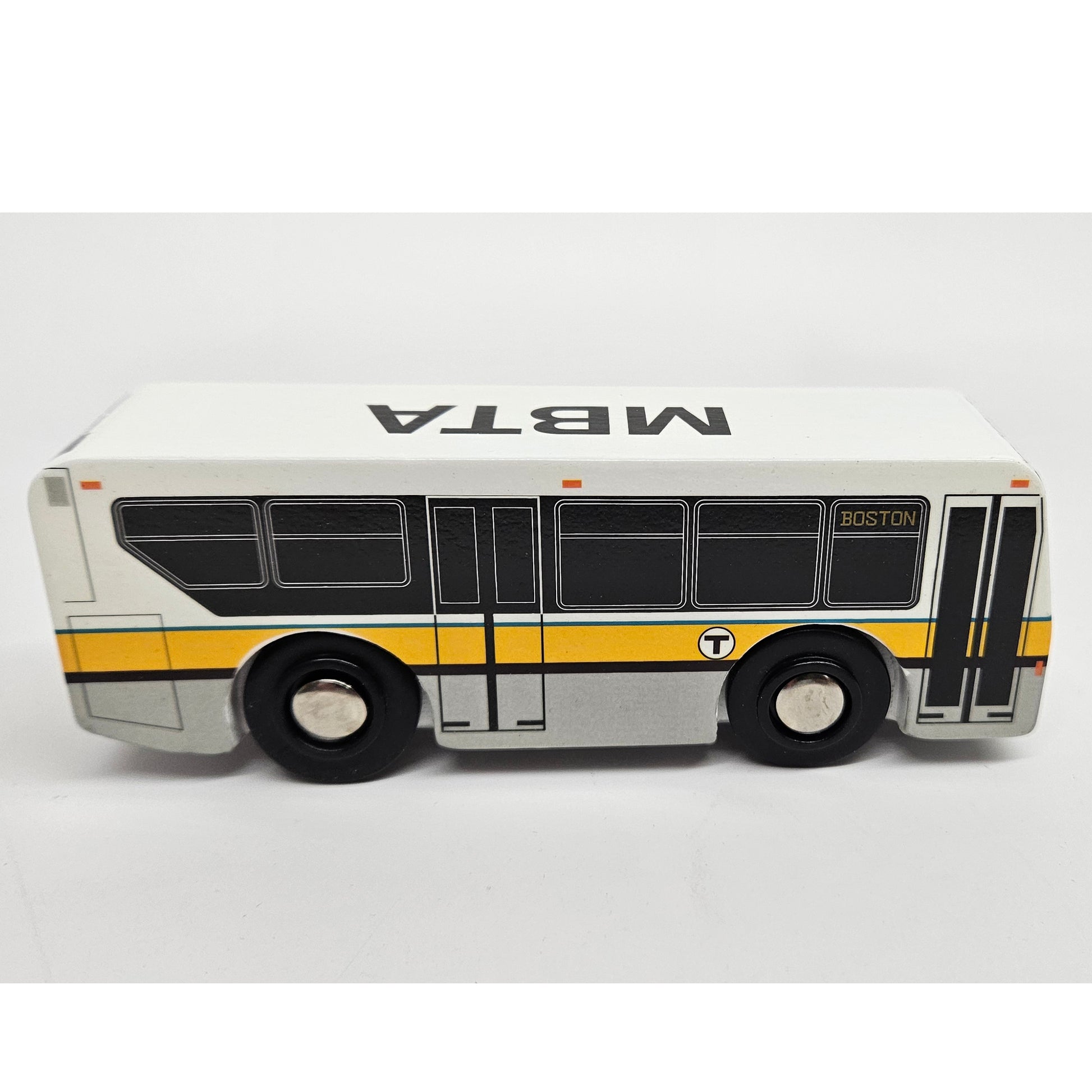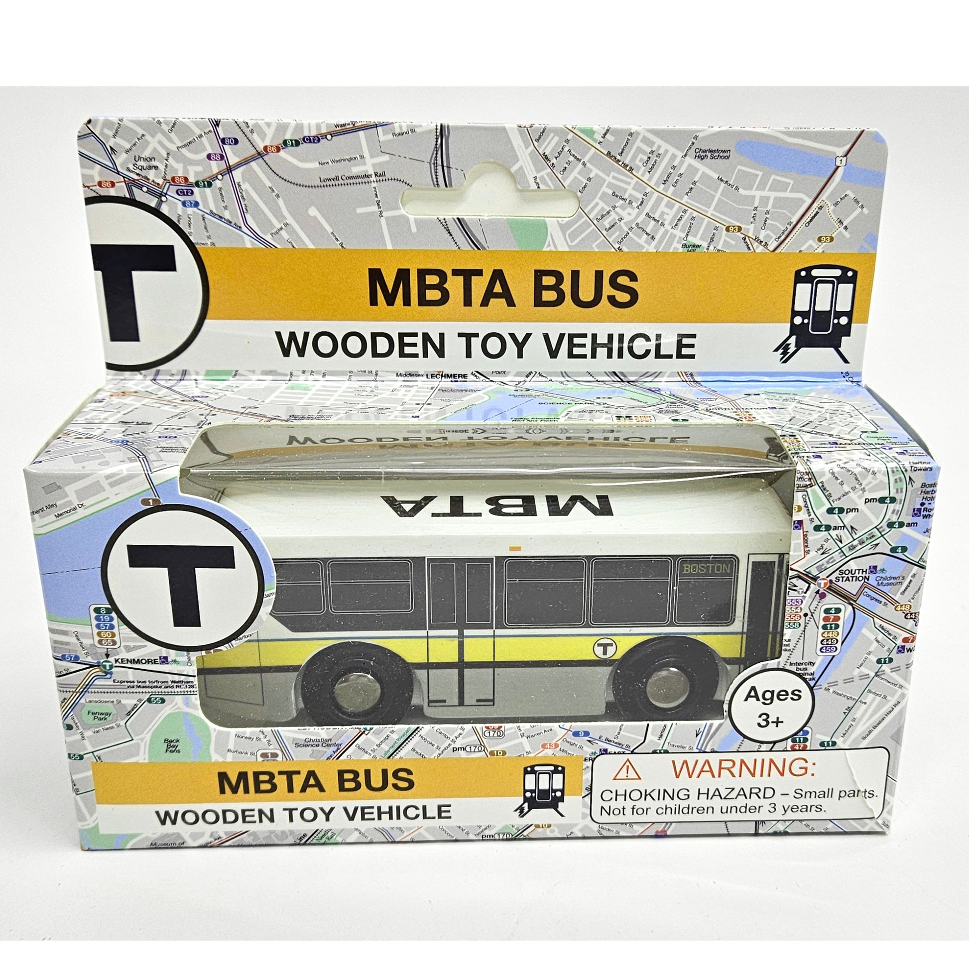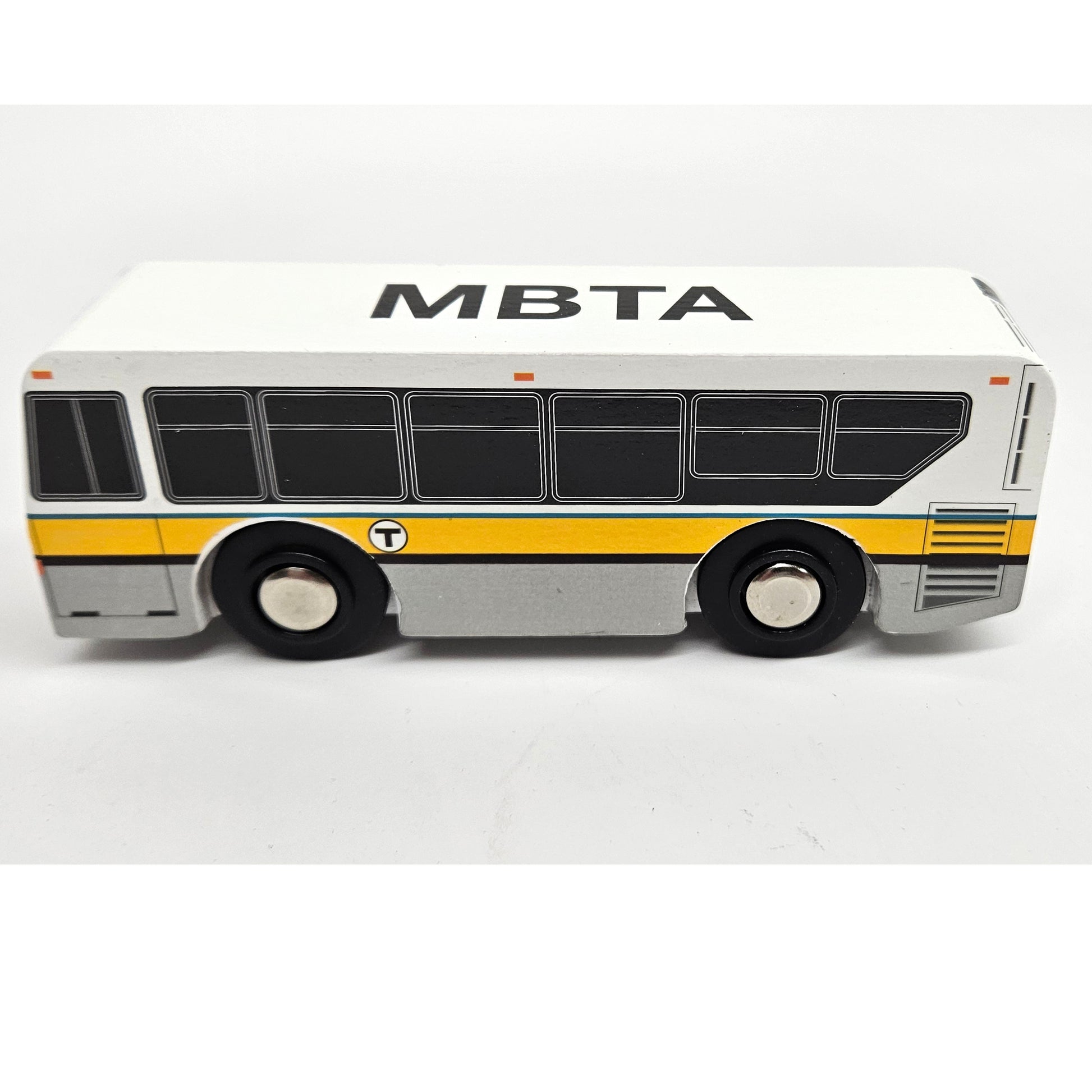 Boston MBTA Wooden Toy Bus (XDE40) (Runs on Wooden Train Tracks)