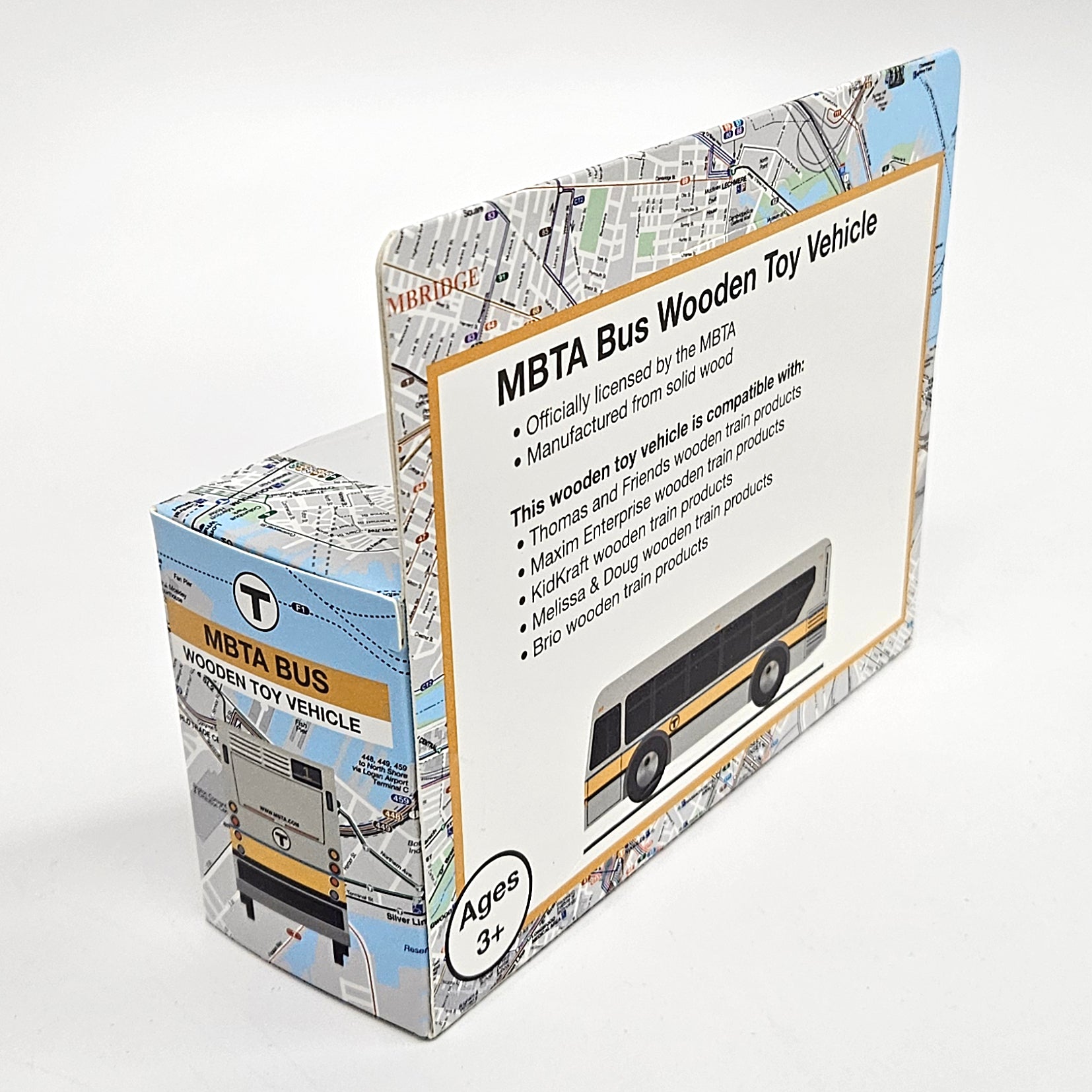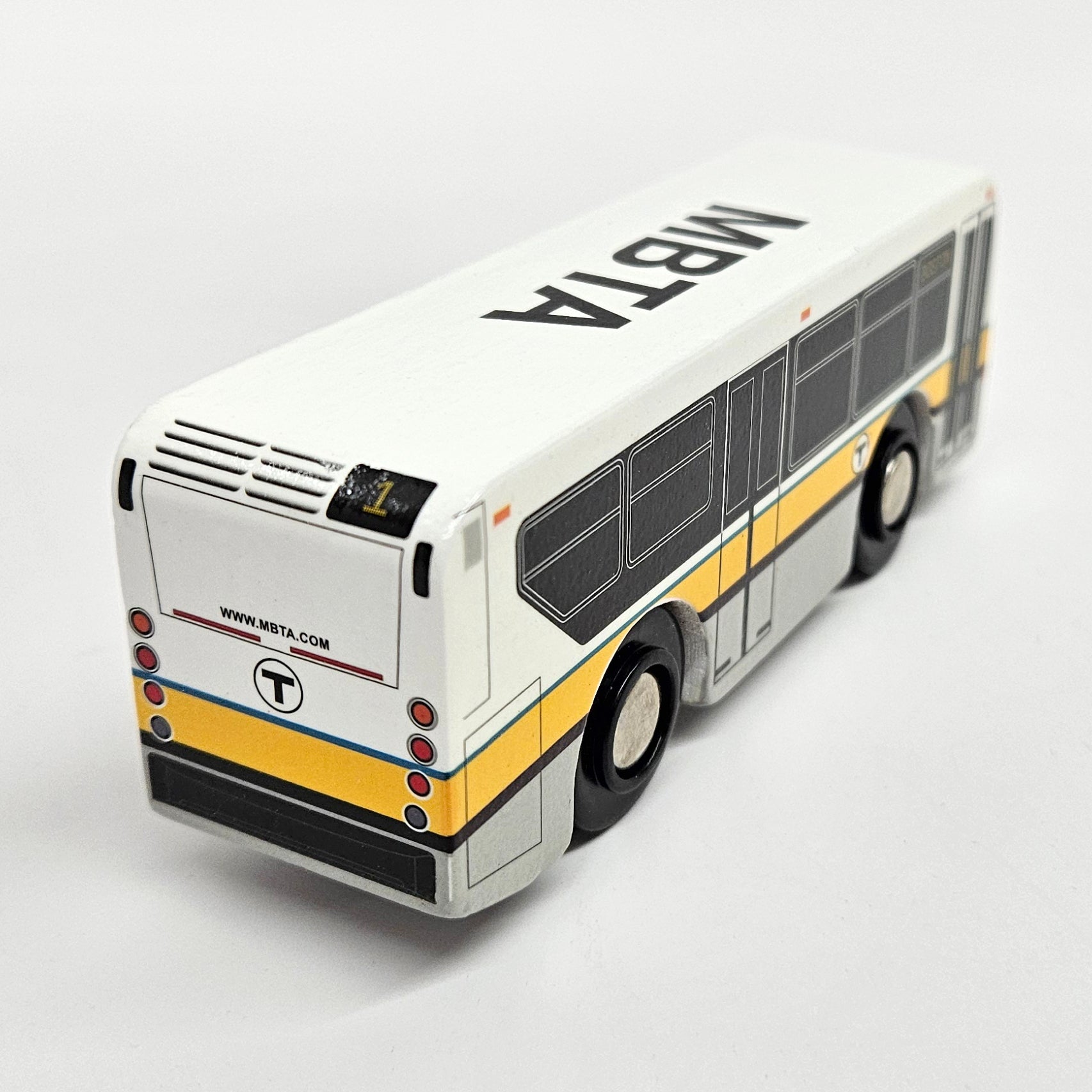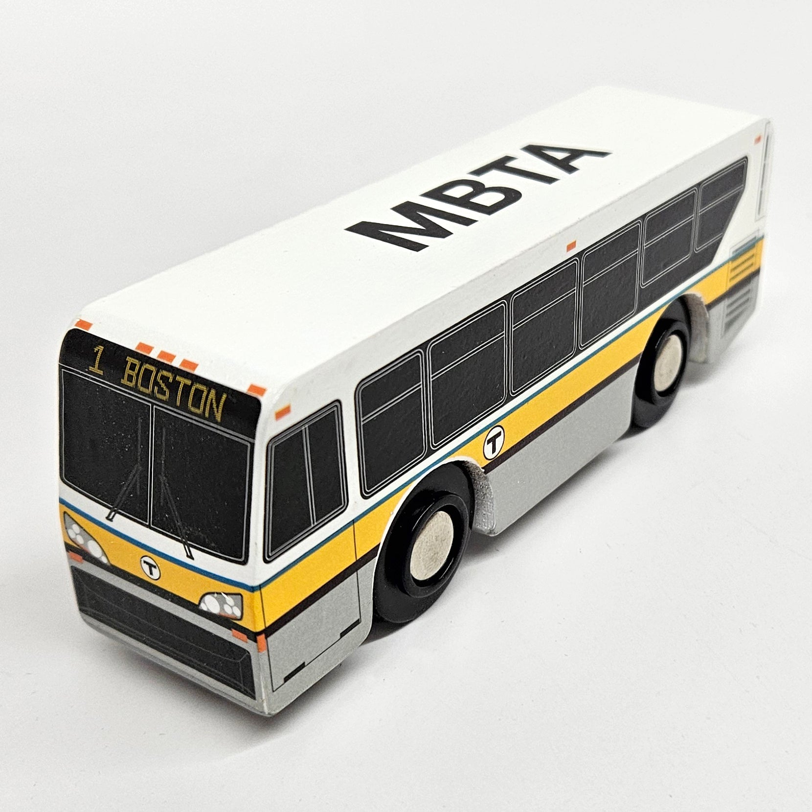 Boston MBTA Wooden Toy Bus (XDE40) (Runs on Wooden Train Tracks)