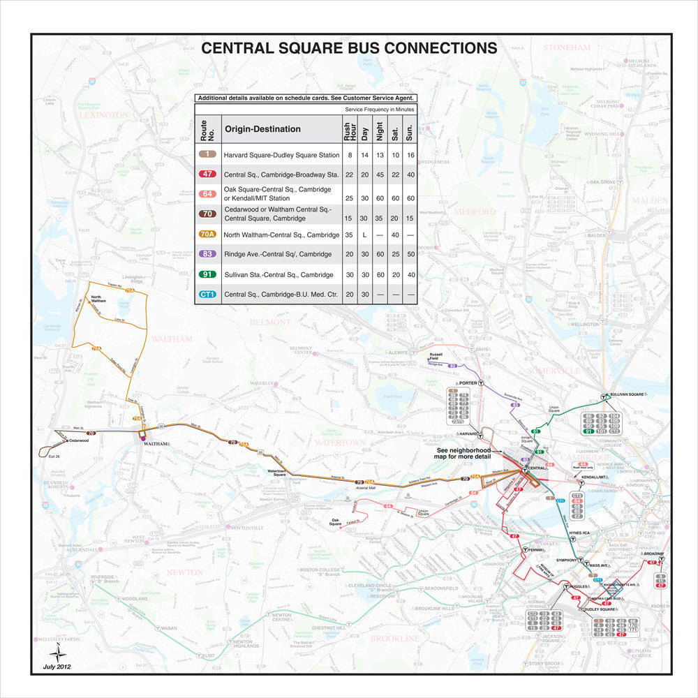MBTA Central Square Bus Connections Map (Jul. 2012)