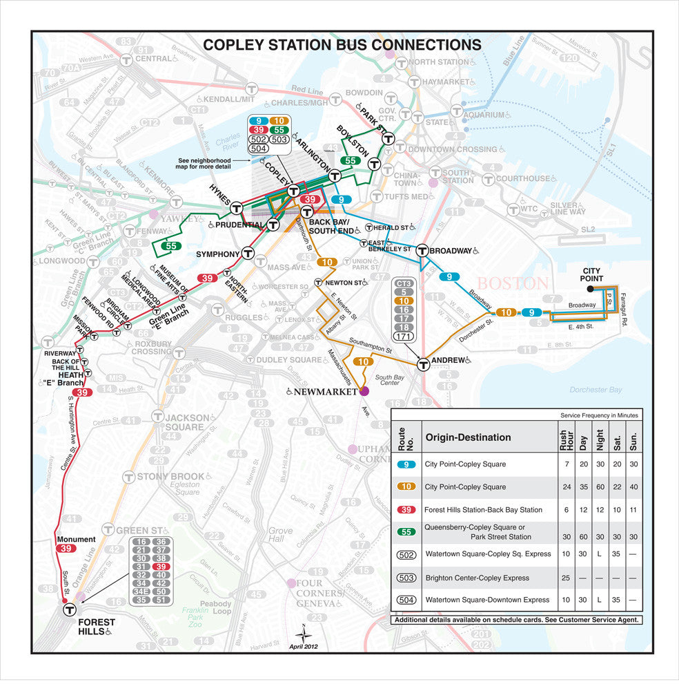MBTA Copley Station Bus Connections Map (Apr. 2012)