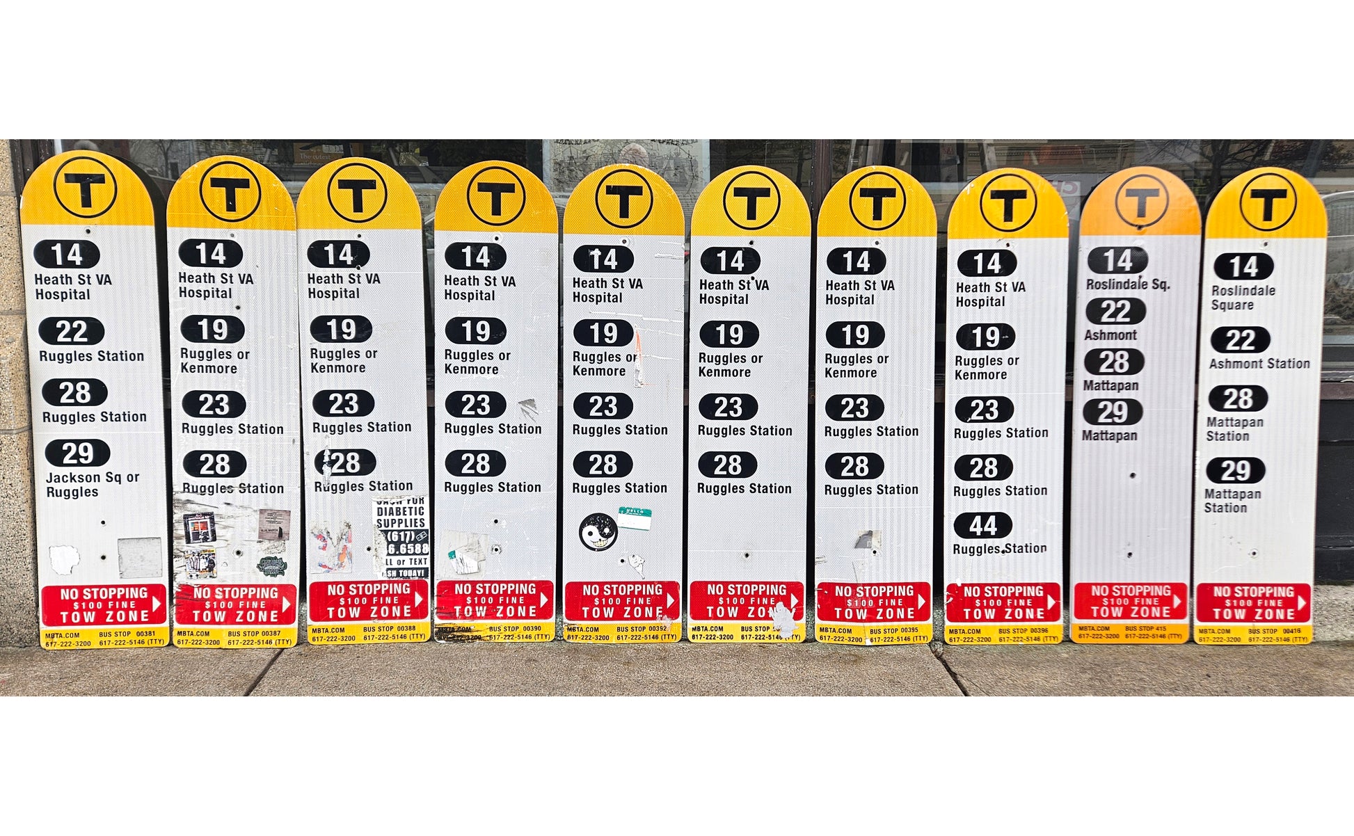 Decommissioned MBTA Bus Stop Signs: 14; 19; 22; 23; 28; 29; 44