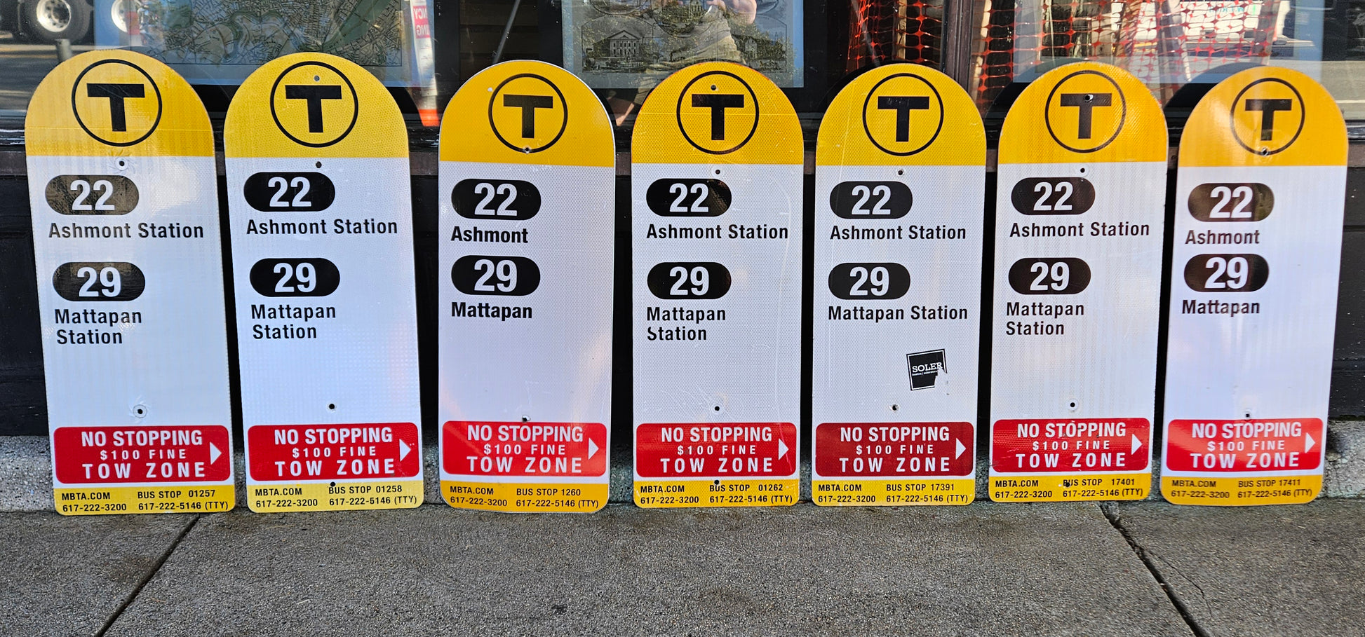 Decommissioned MBTA Bus Stop Signs: 22 Ashmont; 29 Mattapan