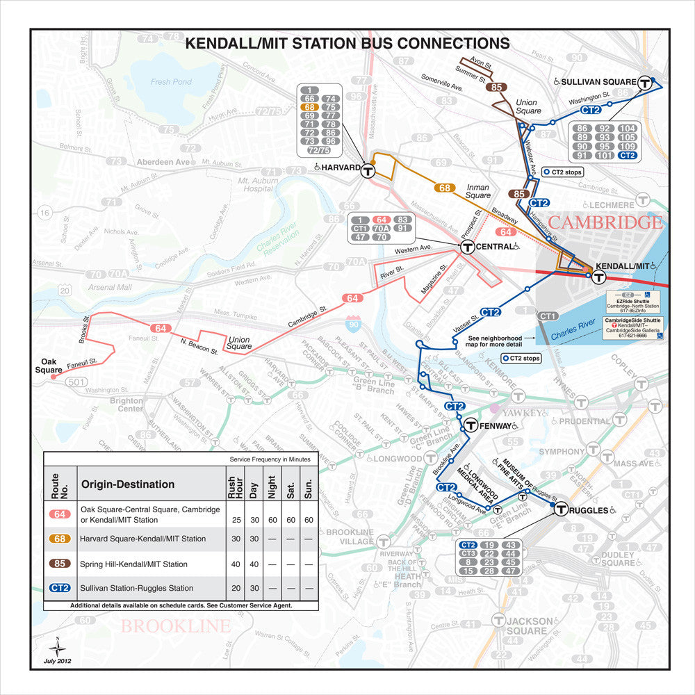 MBTA Kendall/MIT Station Bus Connections Map (July 2012)
