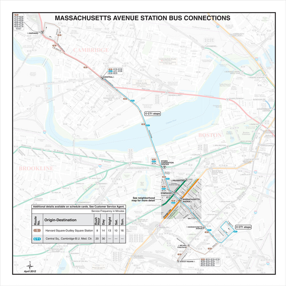 MBTA Massachusetts Avenue Station Bus Connections Map (Apr. 2012)