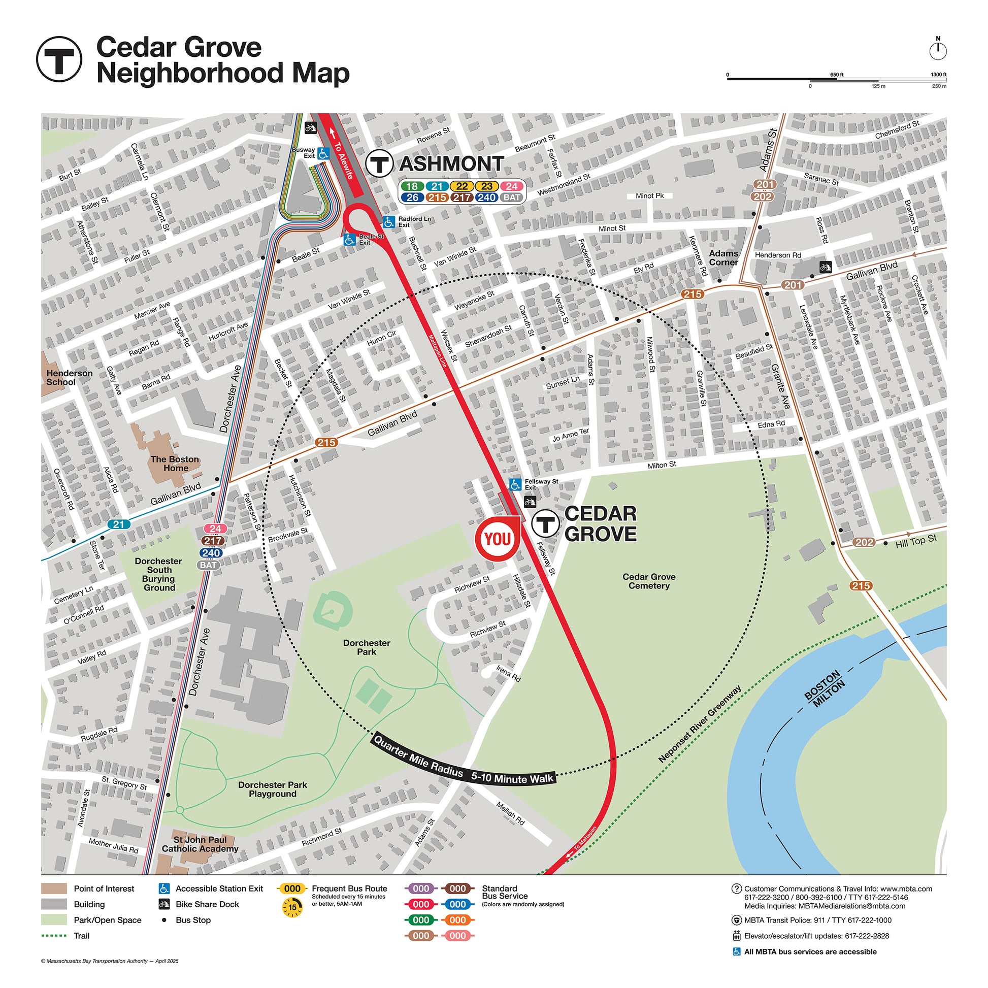 MBTA Cedar Grove Station Neighborhood Map (Apr. 2025)
