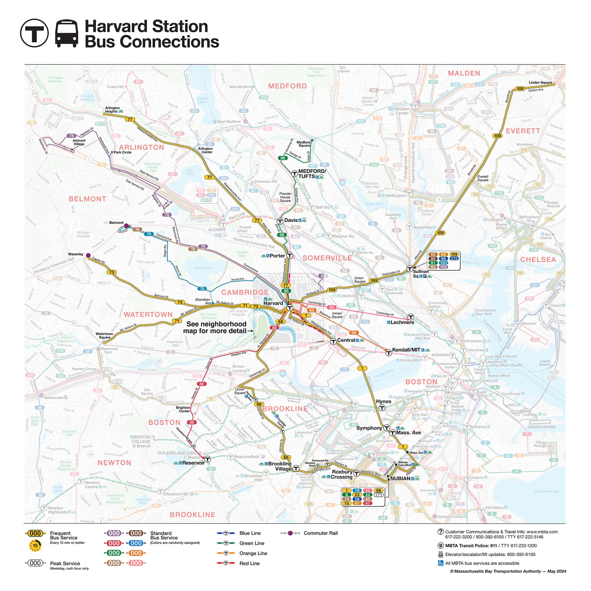 MBTA Harvard Station Bus Connections Map (May 2024)
