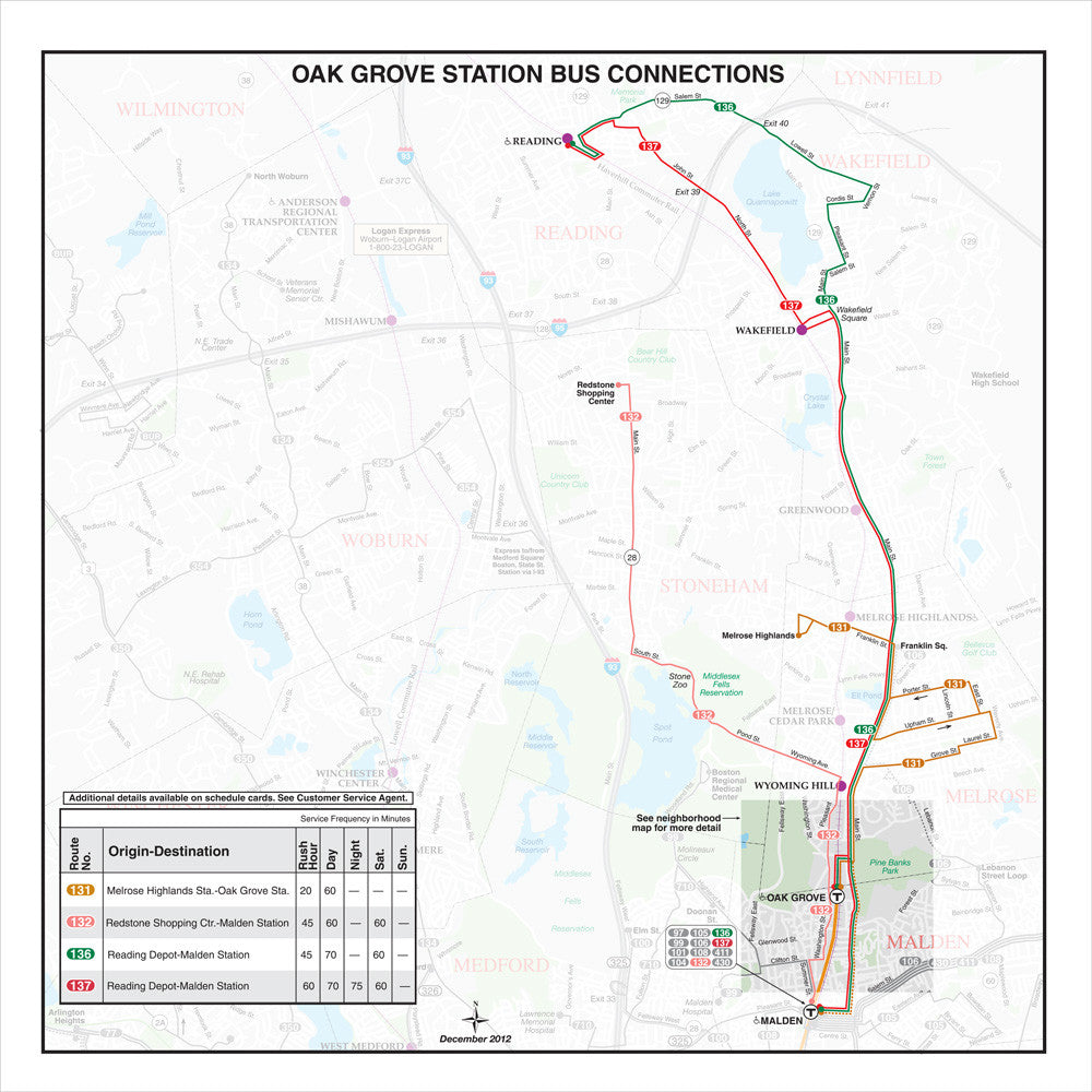 MBTA Oak Grove Station Bus Connections Map (Dec. 2012)