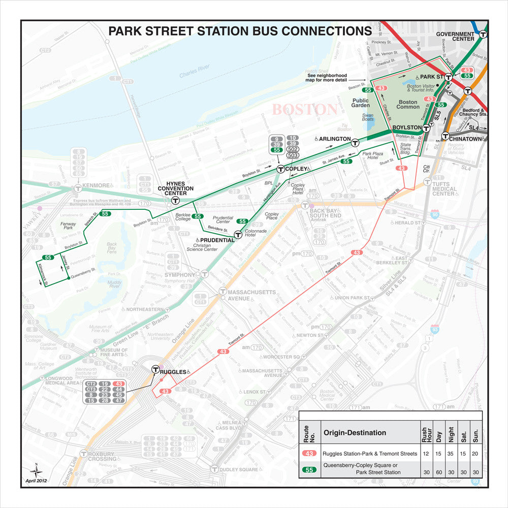 MBTA Park Street Station Bus Connections Map (Apr. 2012)