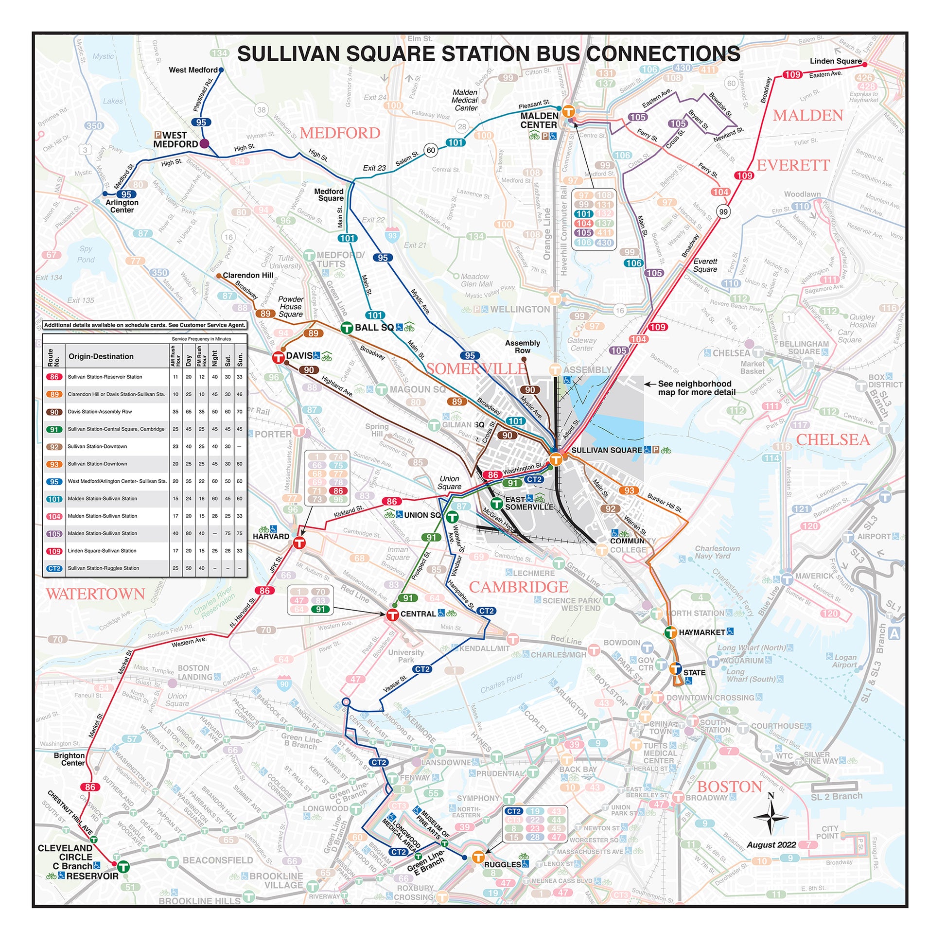 MBTA Sullivan Square Station Bus Connections Map (Sept. 2022)